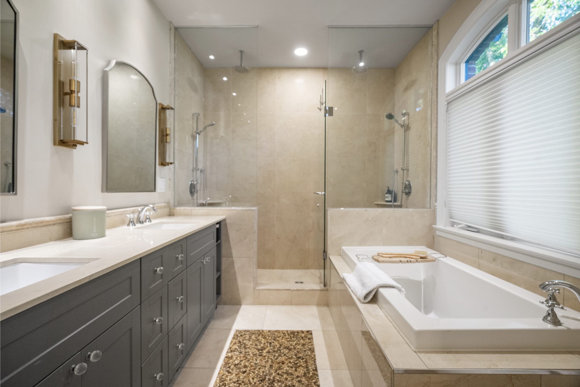 Formal living and dining/family rooms, a spacious home office, a gorgeous new powder room, and a custom mudroom with abundant storage and direct garage access complete this level